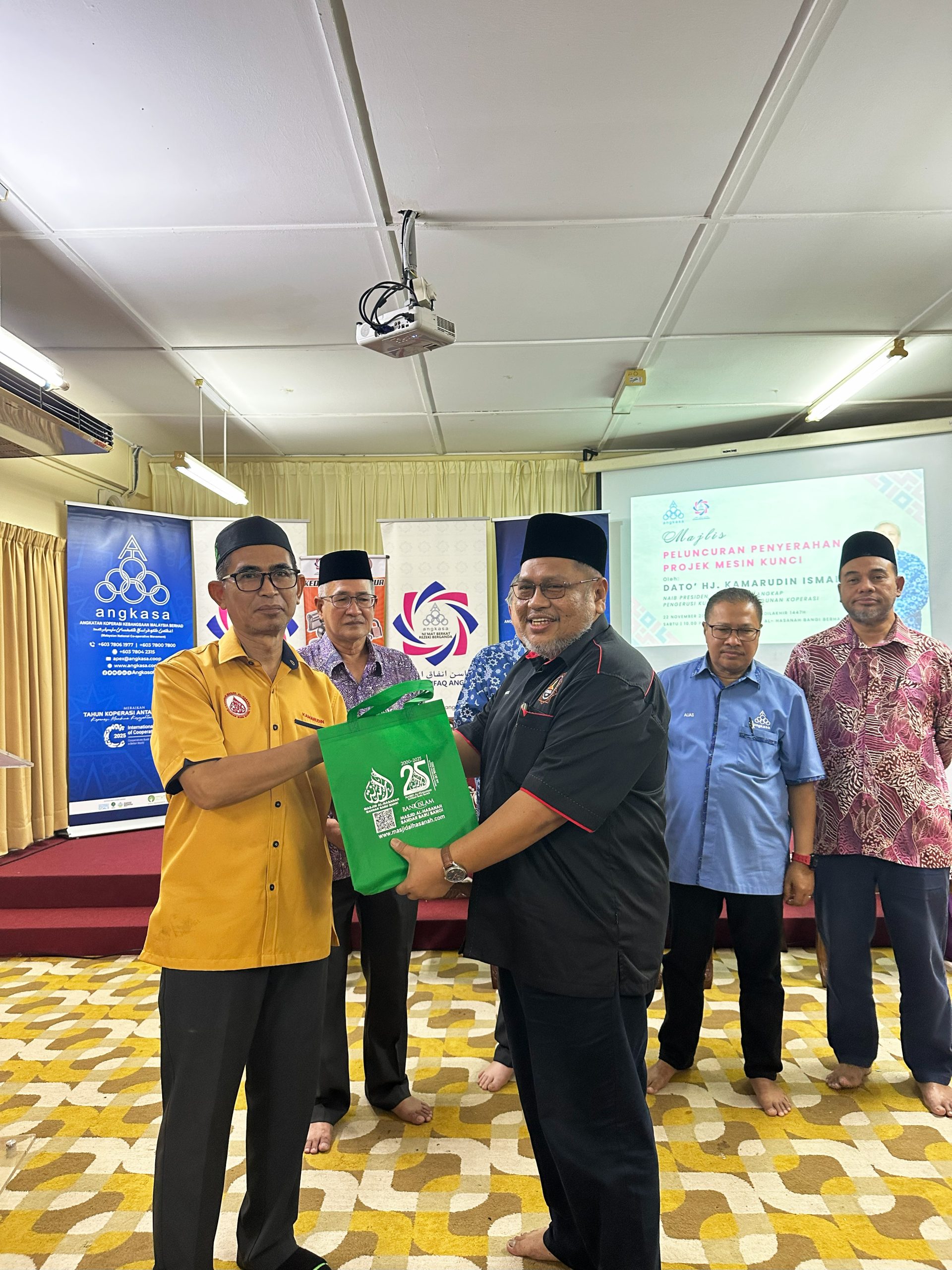 Majlis Peluncuran Penyerahan Projek Mesin Kunci telah berlangsung di Masjid Al-Hasanah, Bandar Baru Bangi, dan dirasmikan oleh Ybhg. Dato’ Haji Kamaruddin Ismail, Naib Presiden ANGKASA merangkap Pengerusi Kumpulan Pembangunan Koperasi. Pada majlis tersebut, 4 daripada 8 koperasi yang hadir telah menerima replika kunci sebagai simbolik penyerahan projek.