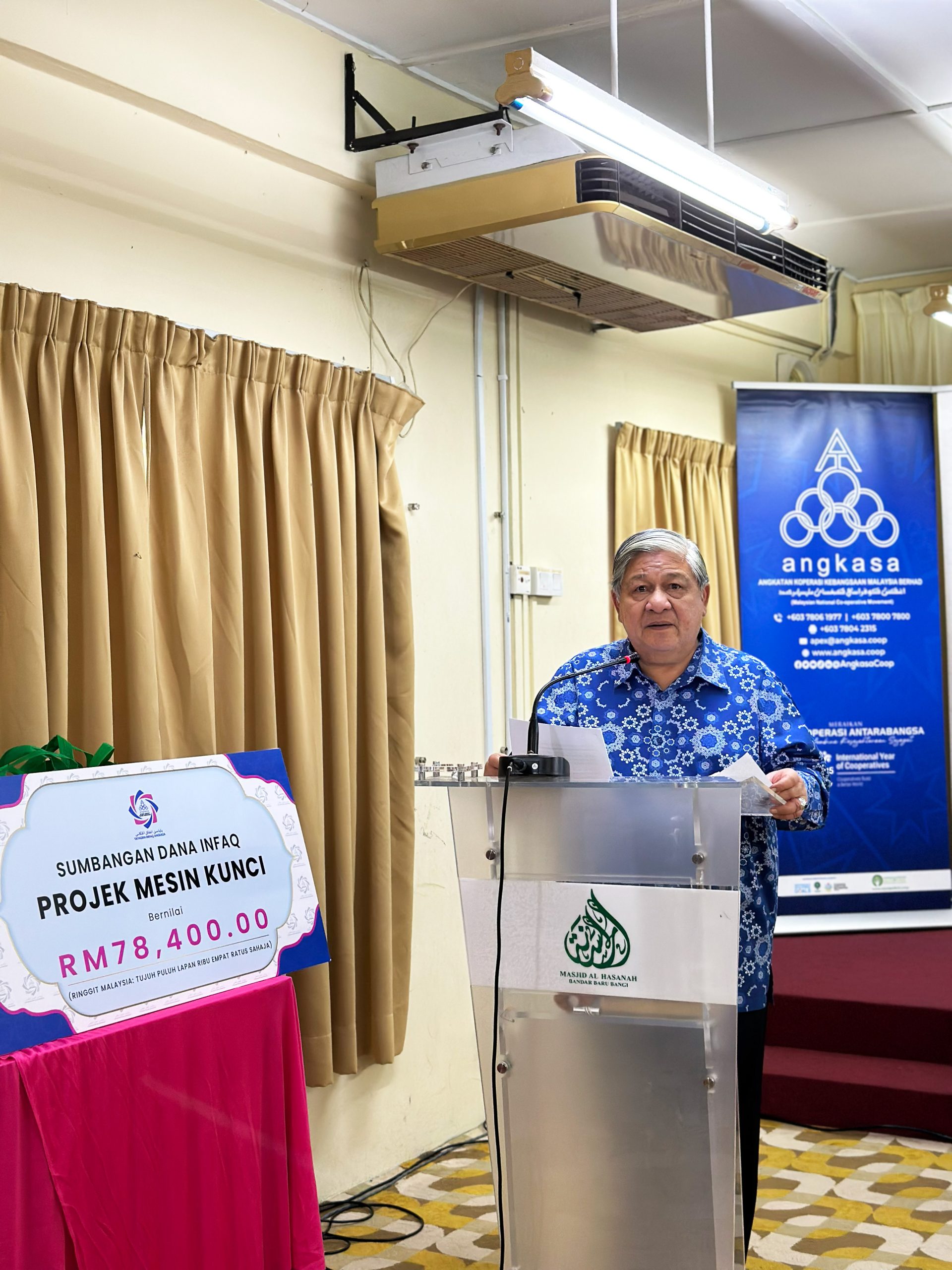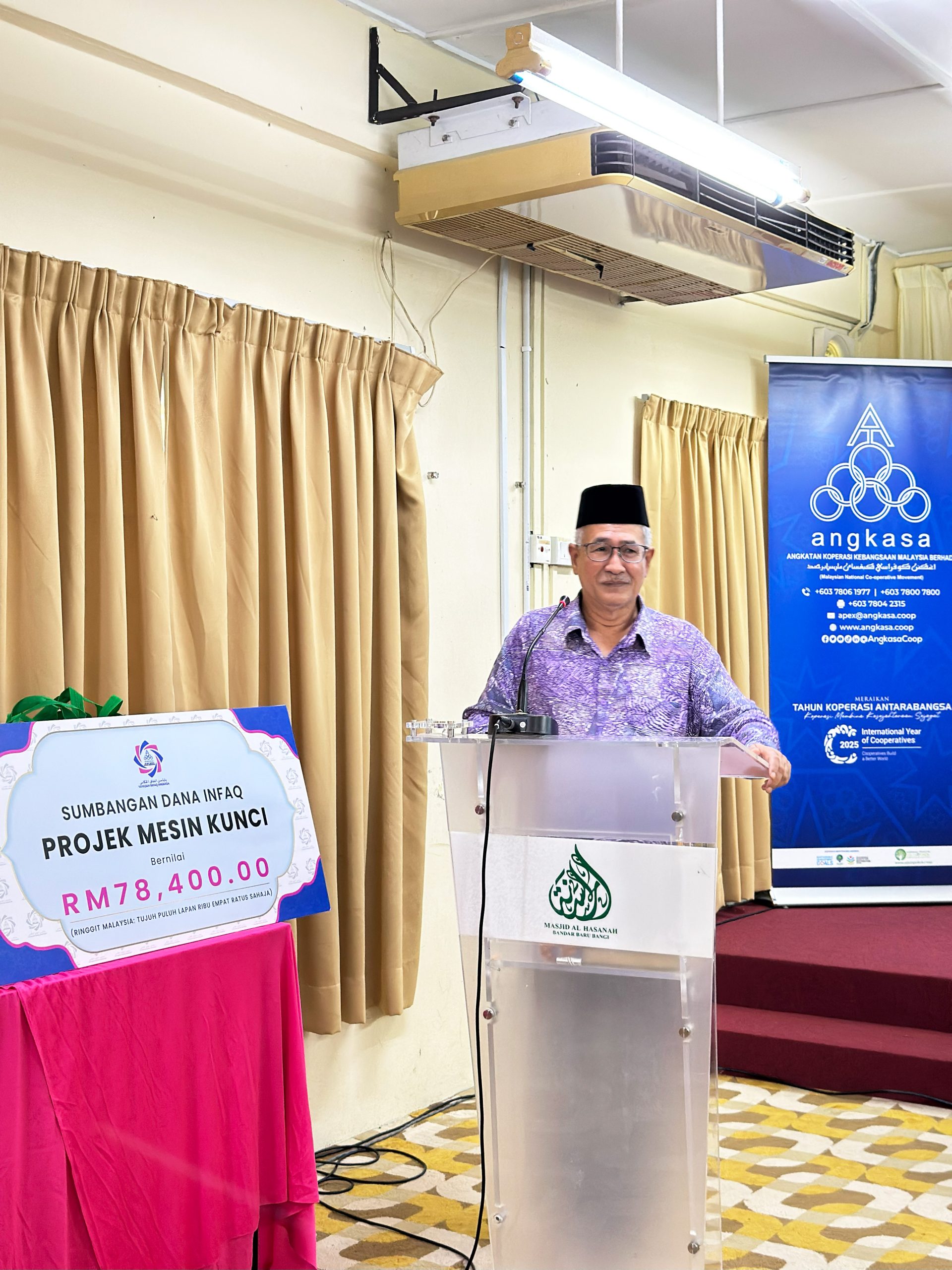 Sabtu, 22 November 2025 – Yayasan Infaq ANGKASA (YIA) telah menyalurkan dana infaq berjumlah RM78,400.00 kepada 8 Koperasi terpilih bagi melaksanakan Projek Mesin Kunci melalui kerjasama Seksyen Pengurusan Hartanah, ANGKASA.