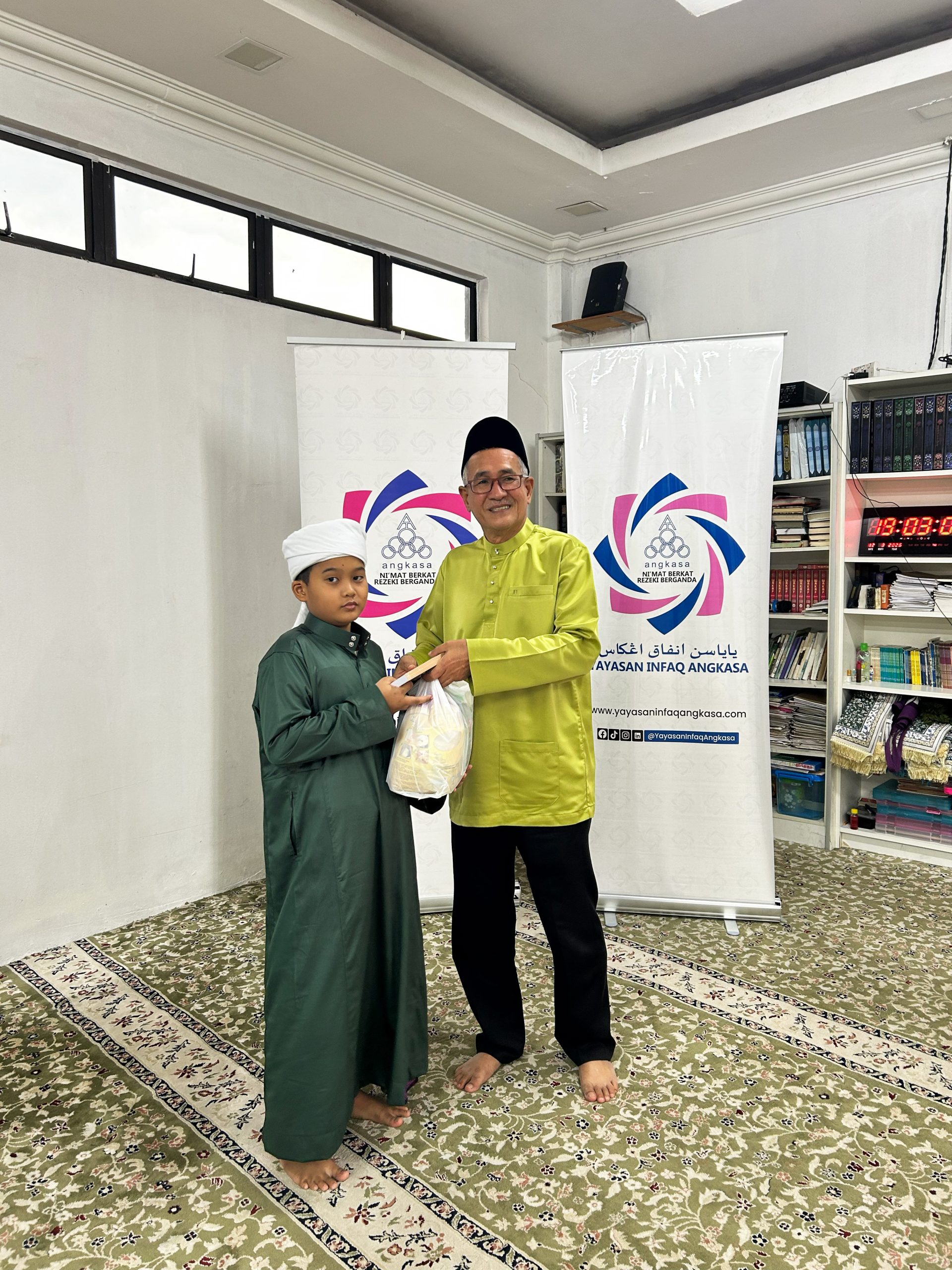 Majlis penyerahan sumbangan telah disempurnakan oleh YBrs. Dr. Mohd Azlan Yahya, Ketua Pegawai Eksekutif Yayasan Infaq ANGKASA. Bantuan ini diharap dapat memberikan sedikit kegembiraan kepada semua pelajar tahfiz berkenaan.