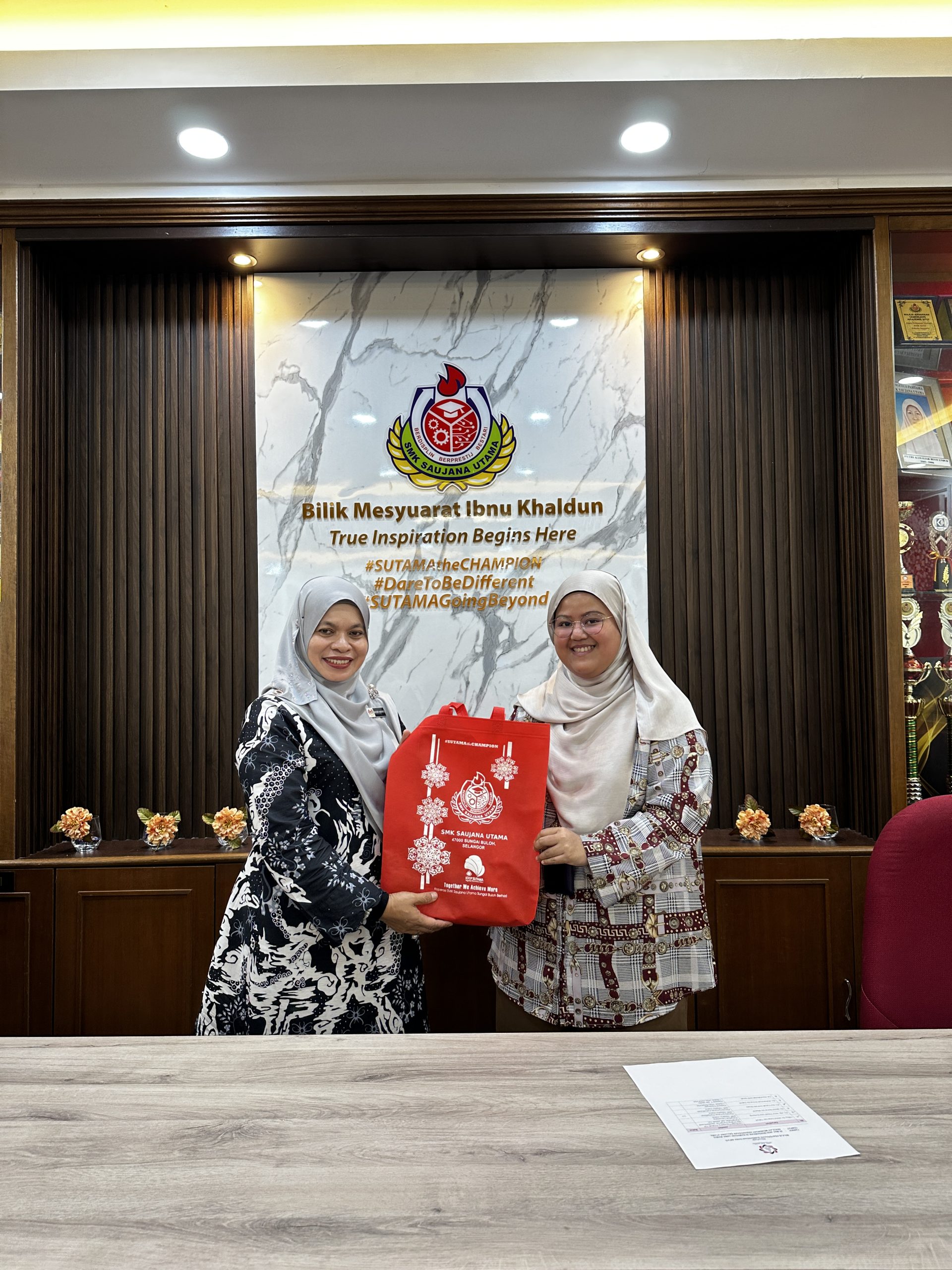 Majlis penyerahan sumbangan telah disempurnakan oleh YBrs. Hajah Noor Hayati Binti Embong, Pengetua Cemerlang SMK Saujana Utama, kepada YBhg. Dr. Mohd Azlan Yahya, Pengerusi Jawatankuasa Pengurusan & Aktiviti YIA. Turut hadir ialah YBrs. Pn. Nor Faizah Binti Md Shukri, Penolong Kanan Kokurikulum, serta barisan guru SMK Saujana Utama.
